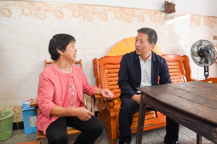 (10月13日上午,市委書(shū)記許忠建在溆浦縣督導(dǎo)檢查鞏固拓展脫貧攻堅(jiān)成果同鄉(xiāng)村振興有效銜接工作。圖為許忠建在小橫垅鄉(xiāng)羅豐村防返貧監(jiān)測(cè)戶向望德家中了解家庭成員、收入來(lái)源和各項(xiàng)幫扶政策措施落實(shí)等情況。)