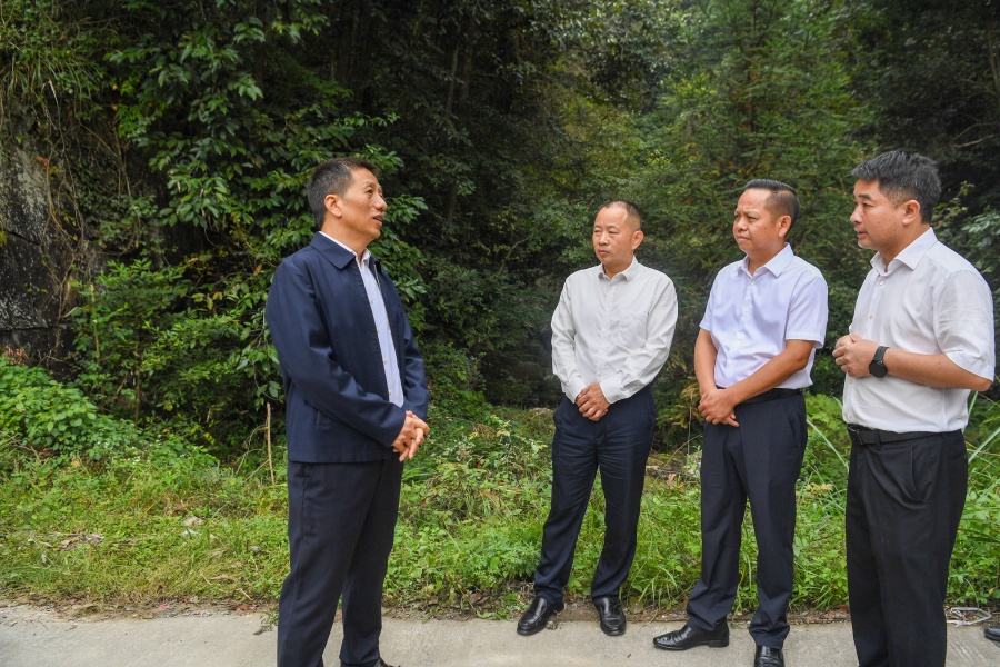 (許忠建在小橫垅鄉(xiāng)金子村了解森林防滅火、農(nóng)村道路交通安全整治工作、廢棄礦洞安全監(jiān)管工作等情況。以上照片均由懷化日?qǐng)?bào)全媒體記者 楊智偉 攝)