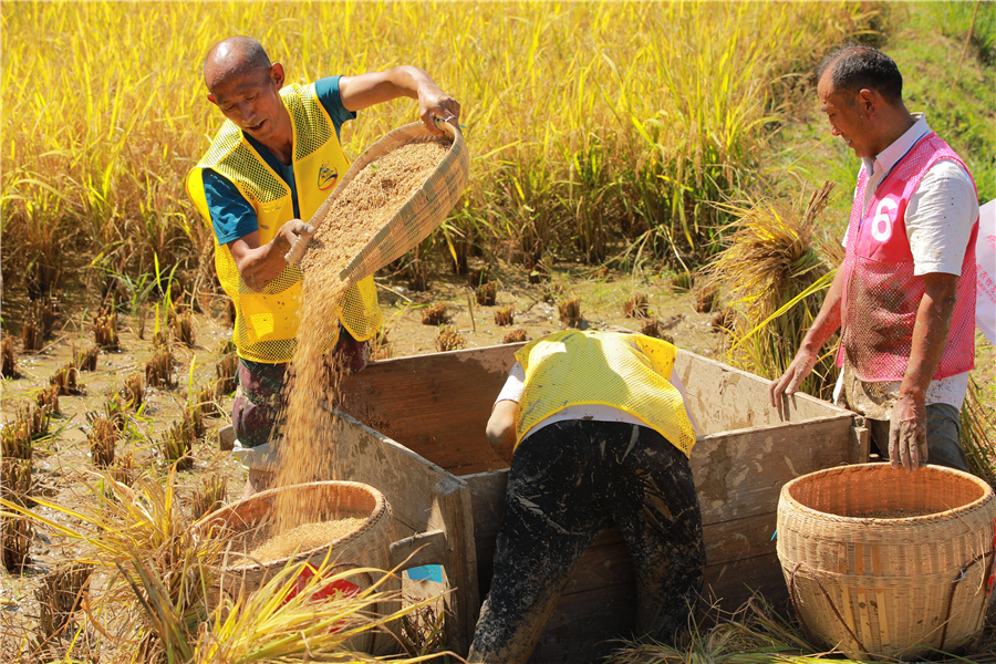 10月10日,“云端漫步·稻浪飛歌”農(nóng)耕文化競(jìng)技大賽在海拔逾千米的梯田間火熱舉行,來自各地的游客乘索道、穿云海,與當(dāng)?shù)厝罕娨坏来虻竟?,體驗(yàn)傳統(tǒng)農(nóng)耕文化的快樂,演繹“福地懷化”的文旅魅力。