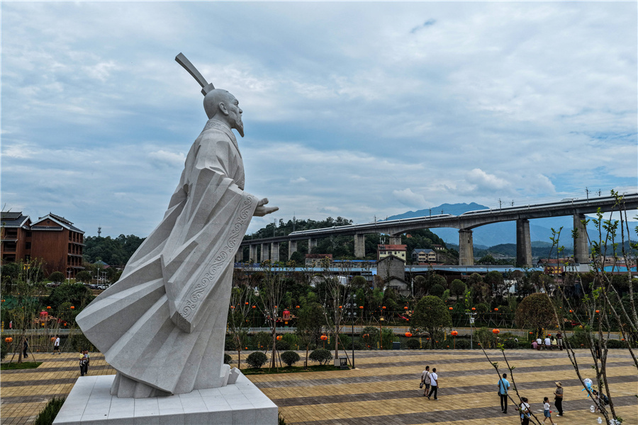 (圖為天問島上屈原雕像。懷化日報全媒體記者 潘雨 攝)