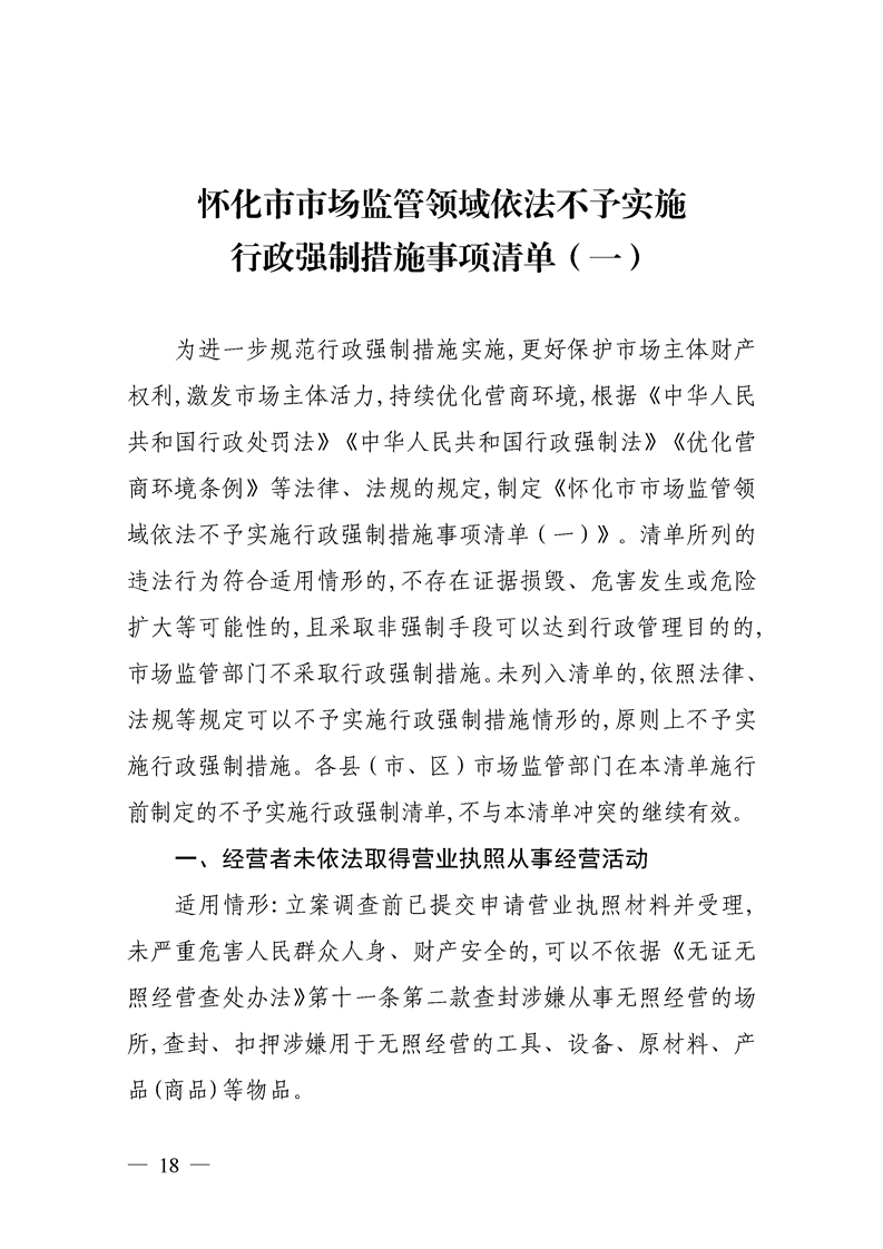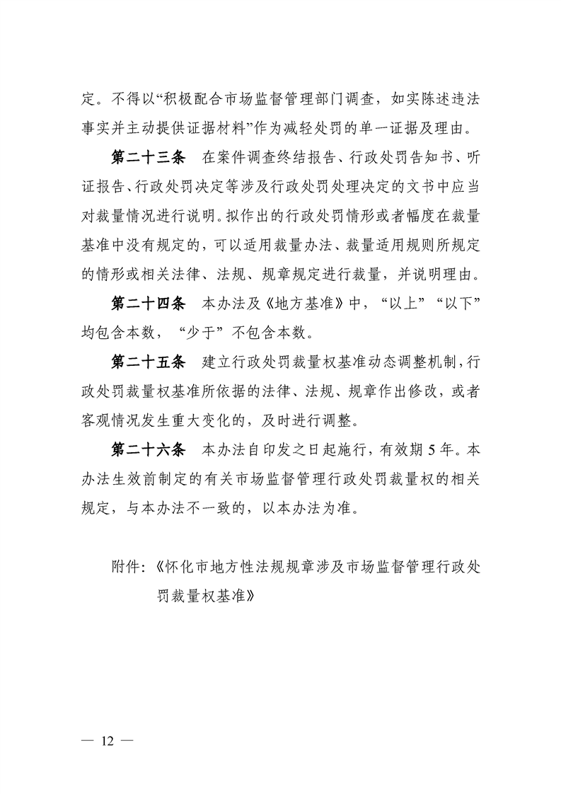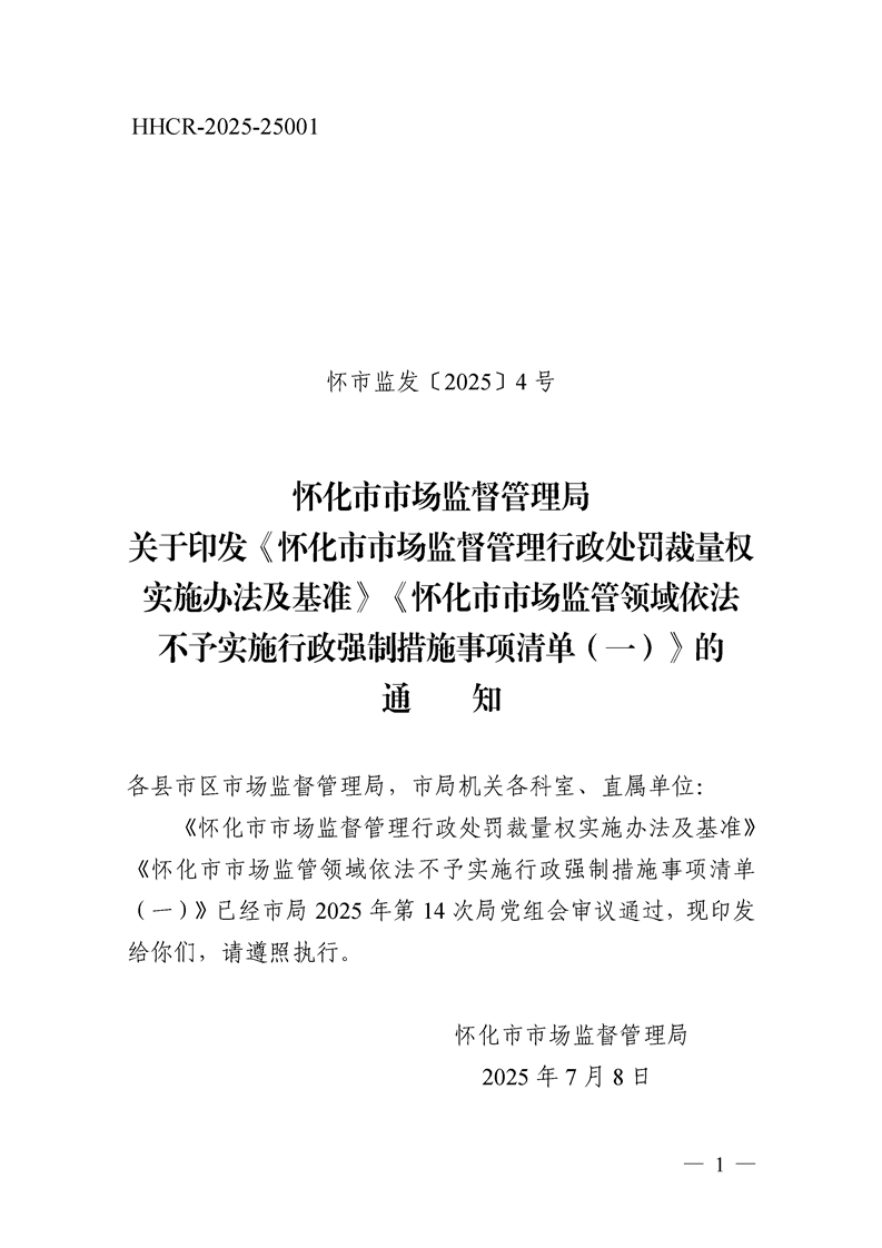 關(guān)于印發(fā)《懷化市市場監(jiān)督管理行政處罰裁量權(quán)實施辦法及基準(zhǔn)》《懷化市市場監(jiān)管領(lǐng)域依法不予實施行政強制措施事項清單(一)》的通知