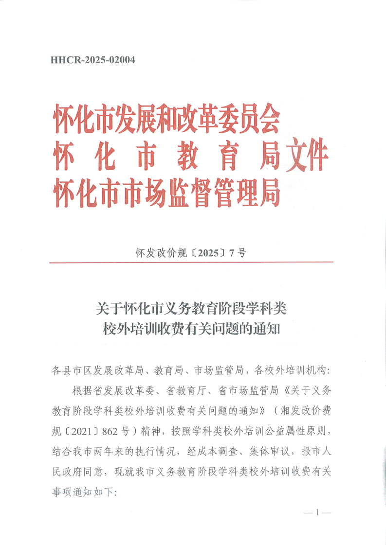 關(guān)于懷化市義務(wù)教育階段學(xué)科類校外培訓(xùn)收費(fèi)有關(guān)問(wèn)題的通知